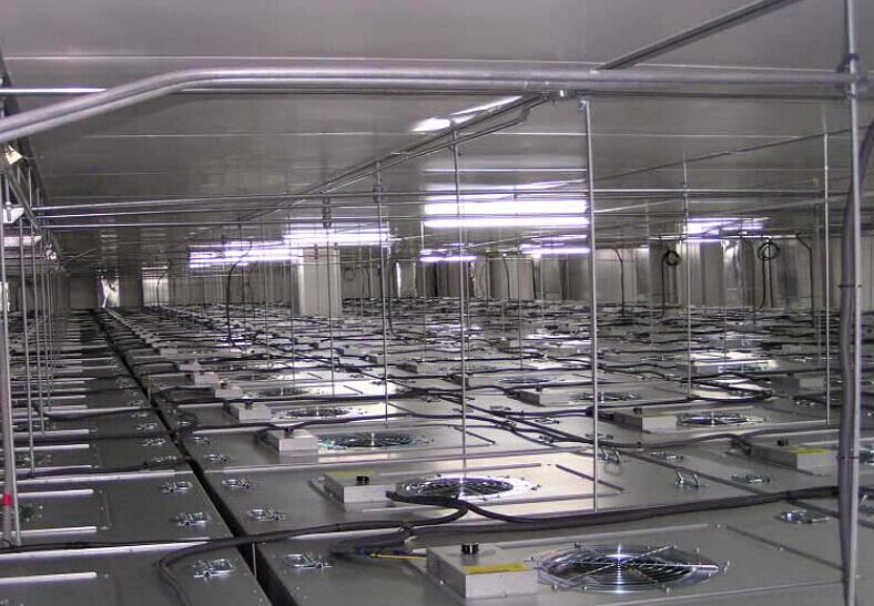 是風機和FFU高效過濾器的組合,也可稱為“自帶風機的過濾設備”。FFU通常安裝在潔凈室 的送風末端,一般放置在吊裝的“干式”墊片密封龍骨框架上。FFU上面部分為風機模塊,下面部分為過濾 器。根據(jù)潔凈度的要求,過濾器可為不同等級的高效(HEPA)或超高效(ULPA)過濾器,為潔凈室提供潔 凈空氣。風機模塊除了要克服FFU下部高效過濾器的阻力,還要克服整個循環(huán)風所有通道部件的阻力,從而 維持設定的運行風速。FFU系統(tǒng)具有設計施工簡便,風速調(diào)節(jié)靈活,潔凈區(qū)易于變更等特點,因此已成為工業(yè)潔凈室的流行系統(tǒng)形式之一。
