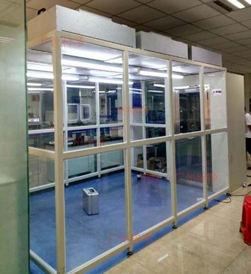 千級潔凈棚(1000級潔凈棚)采用工業(yè)鋁材(或不銹鋼方通、鐵方通噴塑)作為框架,風機濾網(wǎng)機組(FFU)送風,四周懸掛防靜電垂簾(或鋼化玻璃),其內(nèi)部凈化級別可達到100級-10000級。適用于操作區(qū)內(nèi)局部凈化級別要求高的區(qū)域。