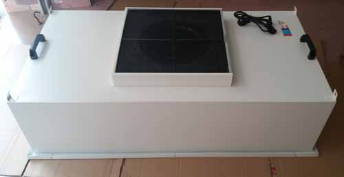 FFU層流罩設(shè)有初效過濾器、高效過濾器兩級過濾網(wǎng)。風機從FFU頂部將空氣吸入并經(jīng)初、高效過濾器過濾,過濾后的潔凈空氣在整個出風面以0.45M/S±20%的風速勻速送出。