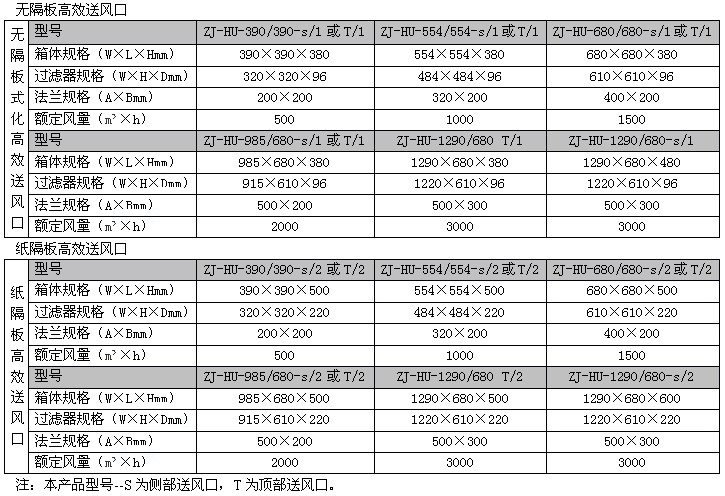 梓凈高效送風(fēng)口標(biāo)準(zhǔn)技術(shù)參數(shù)