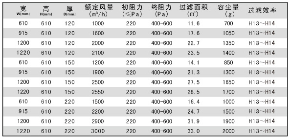 用戶選購(gòu)指南-拋棄式一體化高效過濾器技術(shù)參數(shù)