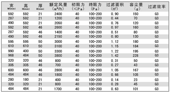 用戶選購(gòu)指南-耐高溫初效過濾器技術(shù)參數(shù)