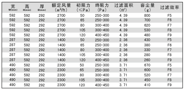 ]]>組合式中效過濾器風阻及運行條件圖