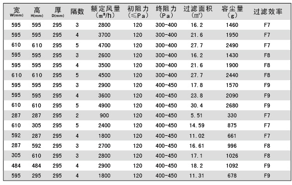 無隔板中效過濾器技術(shù)參數(shù)-用戶選購指南