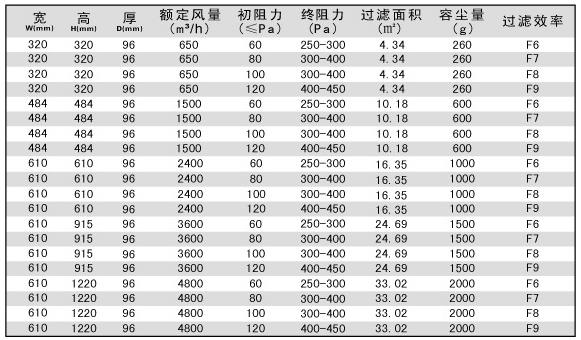 無隔板中效過濾器技術(shù)參數(shù)-用戶選購指南